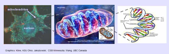 Our nuclear DNA is inherited from both parents, but mitochondrial DNA (mtDNA) is passed down only from our mother. Very soon after fertilization, the sperm's mitochondria are lost, and the developing embryo is left only with maternal mitochondria. Hence, we share the same mtDNA with our mothers, brothers and sisters, but not with our fathers. MtDNA is thus passed down from mother to daughter, generation after generation, with little or no change. You can think of this as the female counterpart to surnames which are traditionally passed down on from father to son. And just like a surname can occasionally change, for example from Forester to Forster, our mtDNA occasionally undergoes a natural mutation and becomes a new mtDNA type which in turn is passed down. Therefore, our personal mtDNA code will track our direct genetic line back until the point at which a natural mutation in the mtDNA code occurred - on average about every 10,000 years in the control regions of the mtDNA.